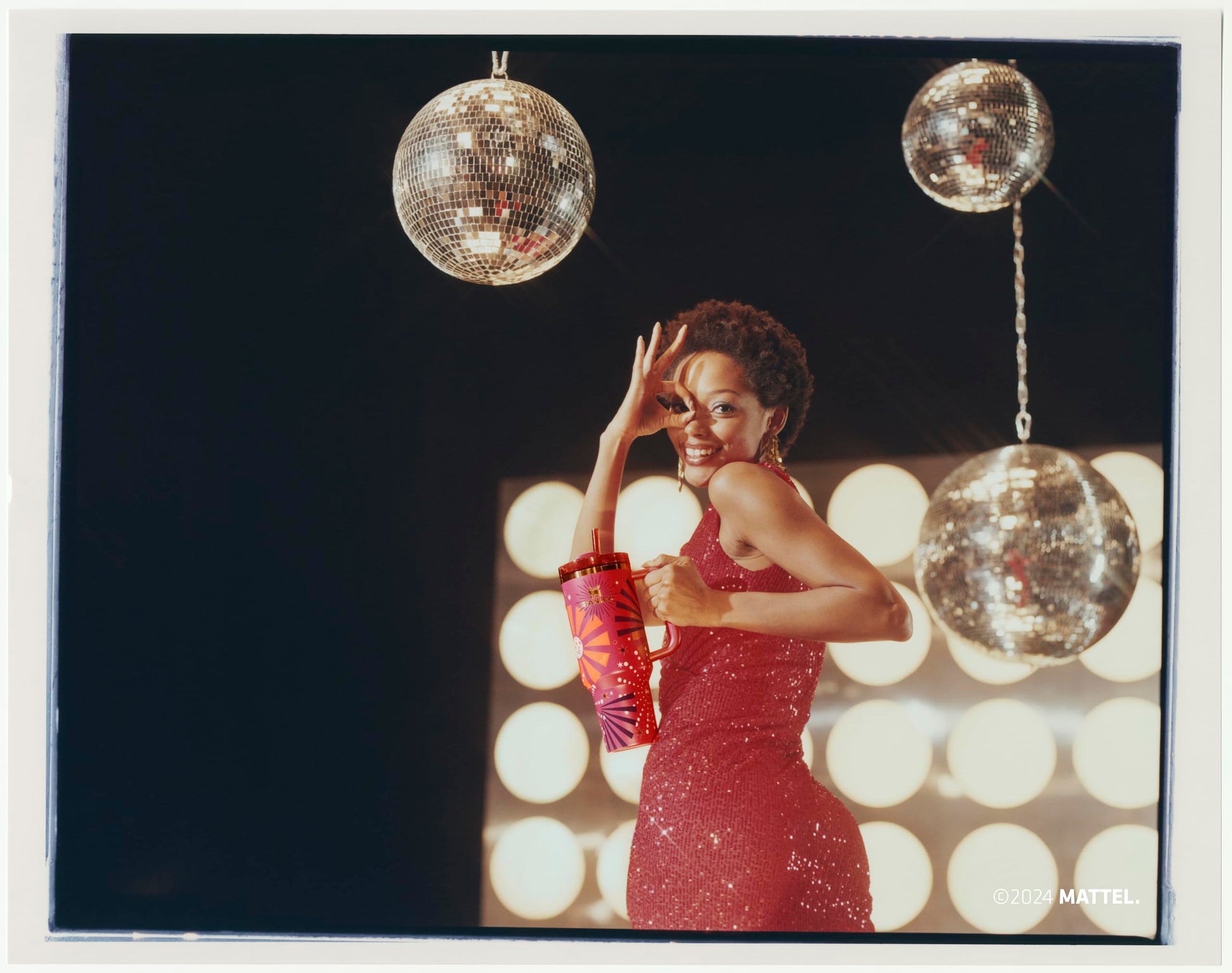 Celebrate style, strength, and legacy with the Dynamite Barbie™ Icon Quencher. Featuring rich colors, dazzling gold accents, and a touch of disco-inspired flair, this tumbler pays tribute to the first Black Barbie™ doll — iconic in her red bodysuit, wrap skirt, and radiant presence.